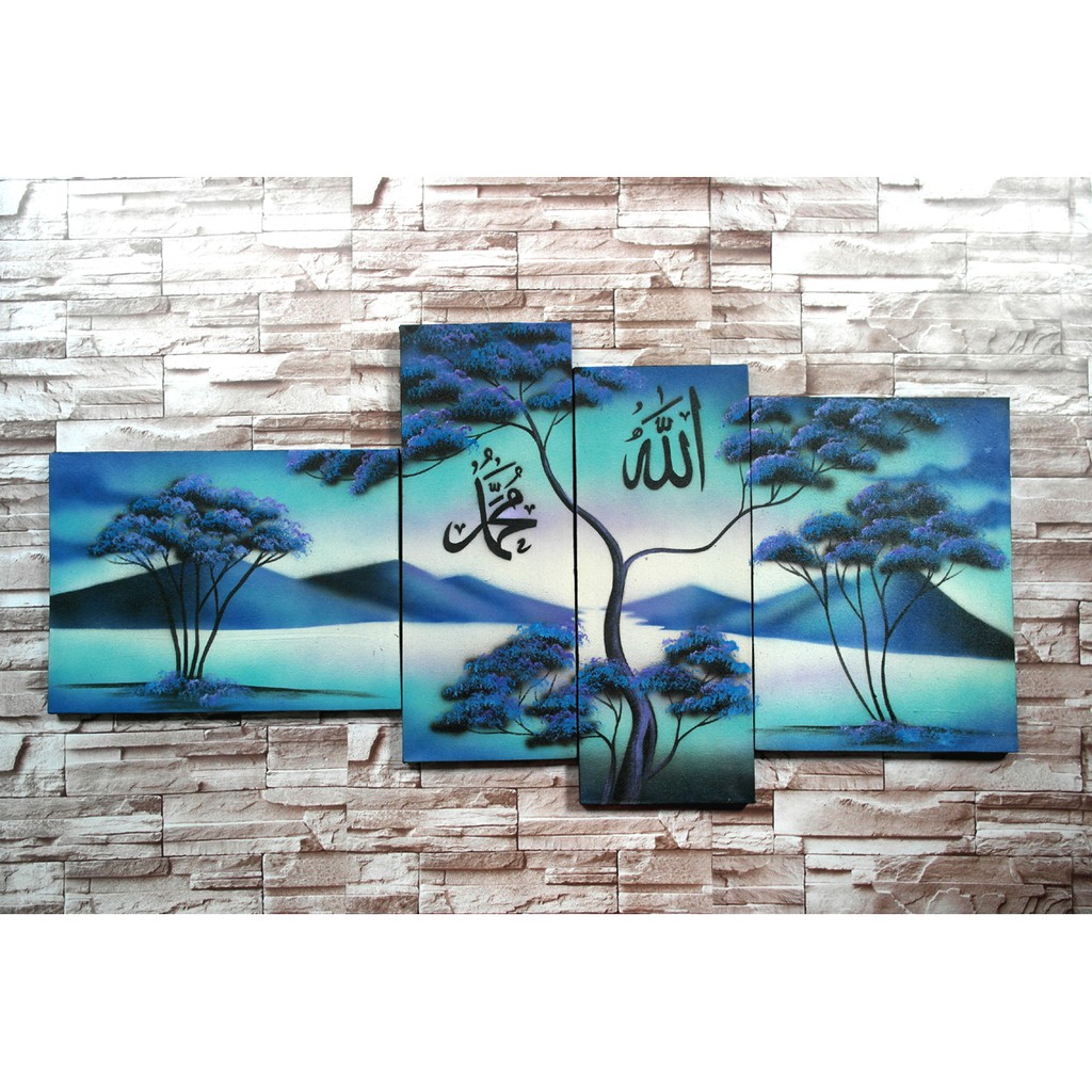 Lukisan Kaligrafi Pemandangan Alam Nuansa Biru Shopee Indonesia