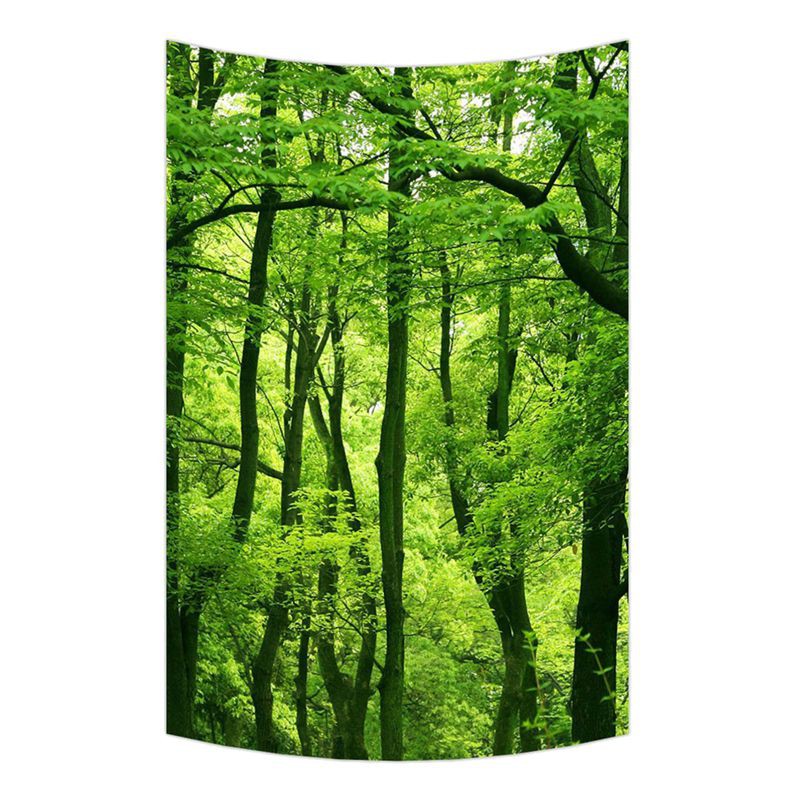 Stiker Dinding Bahan Mudah Dilepas Gambar Pemandangan Hutan Hijau