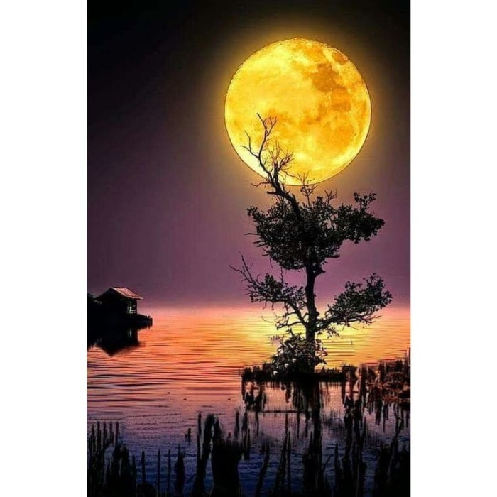 Online Shop Romantis Pemandangan Panorama Bulan Purnama Sea Malam