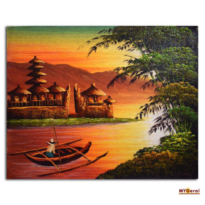 Lukisan Pemandangan Pura Ulun Danu Beratan Bali Shopee Indonesia
