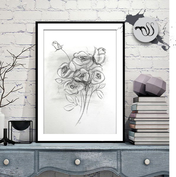Jual Lukisan Sketsa Bunga Dekorasi Interior Dengan Bingkai