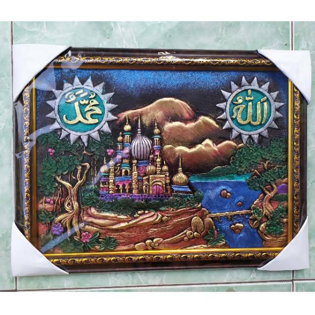 Lukisan Timbul Kaligrafi Allah Muhammad Dan Masjid Kode 016 3d