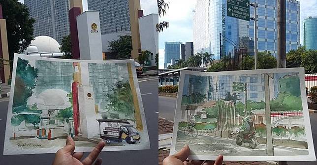 10 Sketsa Indah Pemandangan Kota Jakarta Mirip Banget Sama Aslinya